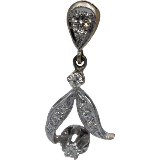 Vintage Antique 14k White Gold VS Round Diamond Floral Dangle Earrings 0.45CT