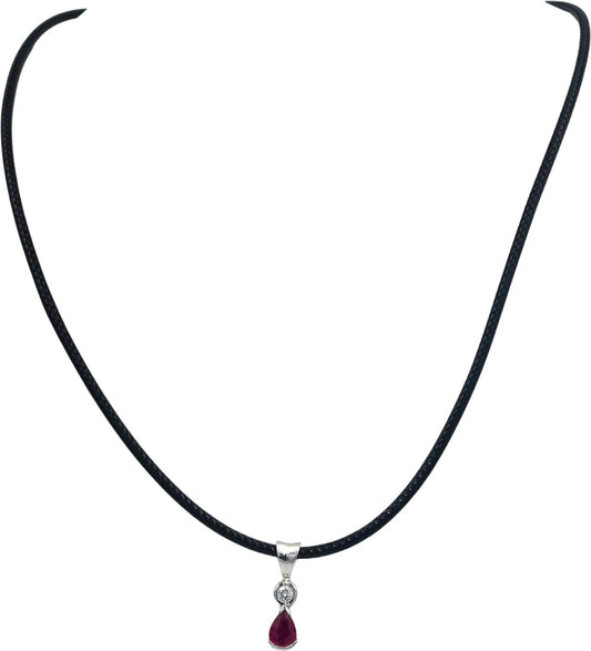 14k White Gold Jewelry Diamond and Ruby Pendant Necklace 0.80CT