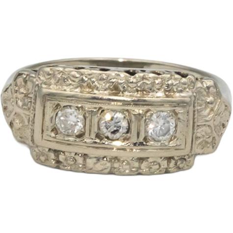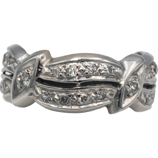 Vintage Antique 14k White Gold Diamond Filigree Floral Band Ring .25CT Size 7.25