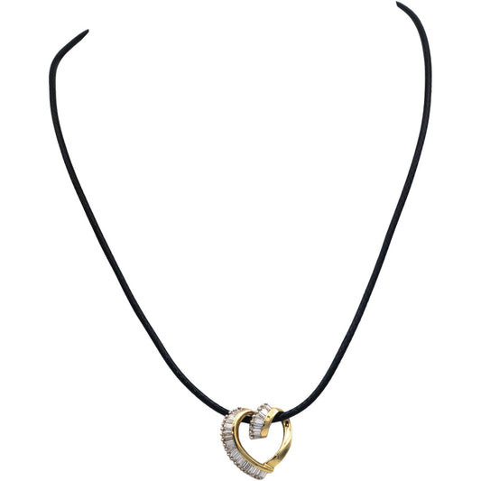 14k Yellow Gold Baguette Cut Diamond Heart Pendant Necklace 0.70CTW