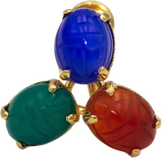 14k Yellow Gold Scarab Carved Assorted Gemstone Screw Back Earrings