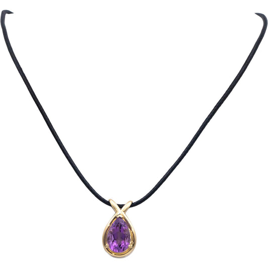 14k Yellow Gold Pear Cut Amethyst Solitaire Pendant Cord Necklace 4.0CT
