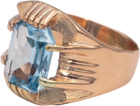 Vintage Antique Blue Topaz 10k Rose Gold Solitaire Cocktail Ring Size 6.5