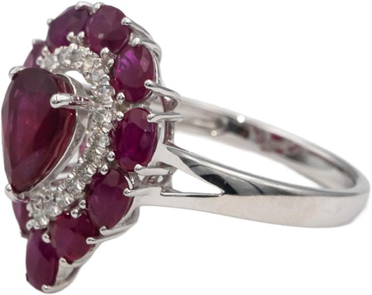 18k White Gold Diamond & Ruby Cocktail Ring 3.25CT Size 7