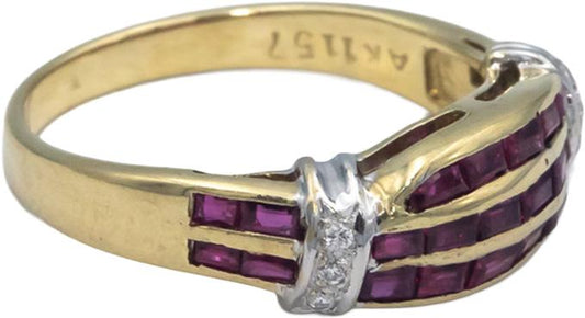 Designer 14k White & Yellow Gold Diamond and Ruby Ring 0.68CT Size 7.25