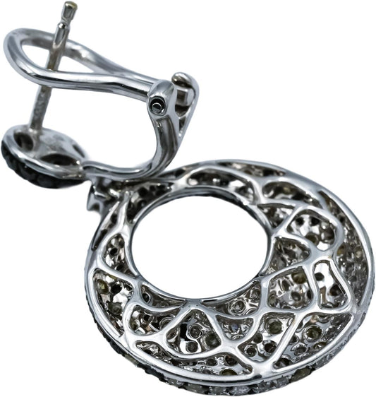 14k White Gold Round Black and Multi-Color Diamond Dangle Earrings 3.50CT