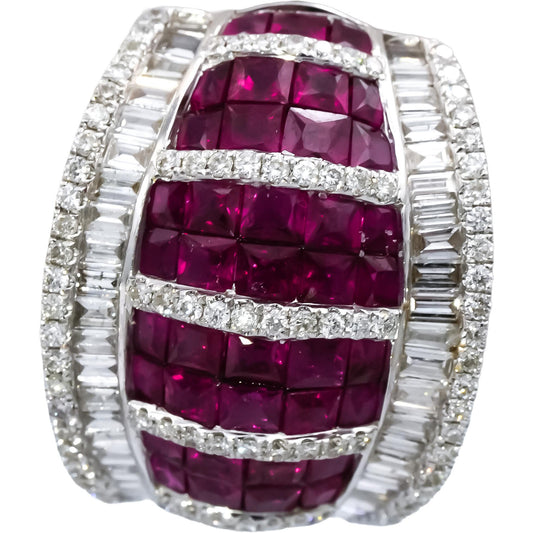 18k White Gold Ruby and Diamond Cluster Curved Earrings 7.90CTW