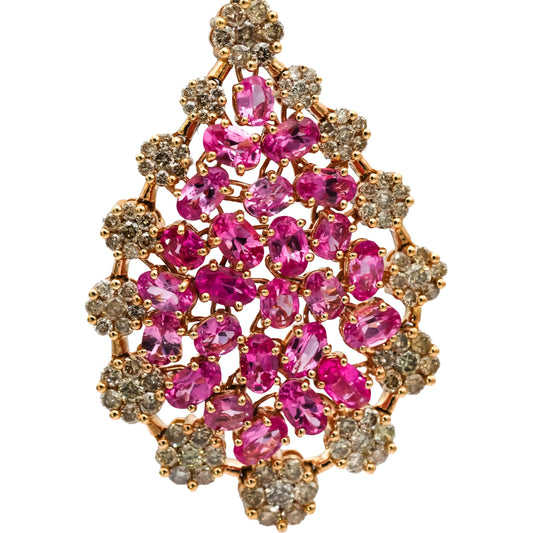 14k Rose Gold Diamond and Pink Sapphire Cluster Dangle Drop Earrings 17.38CTW