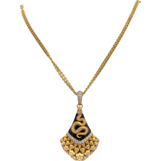 CARRERA Y CARRERA 18k Gold Diamond Onyx Sapphire Abanico Necklace 21.75CT $37500