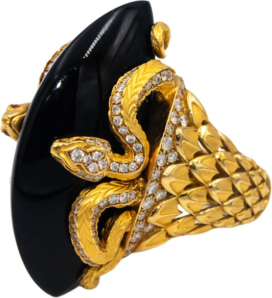 CARRERA Y CARRERA 18k Gold Diamond Sapphire Onyx Abanico Ring 37.20CT $19500