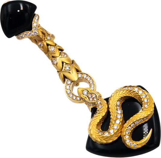 CARRERA Y CARRERA 18k Gold Diamond Onyx Sapphire Abanico Earrings 30.23CT $22900