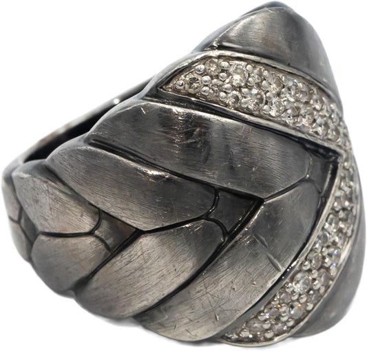 JOHN HARDY VS Diamond Round Cut Sterling Silver Wide Band Ring 0.50CT Size 7