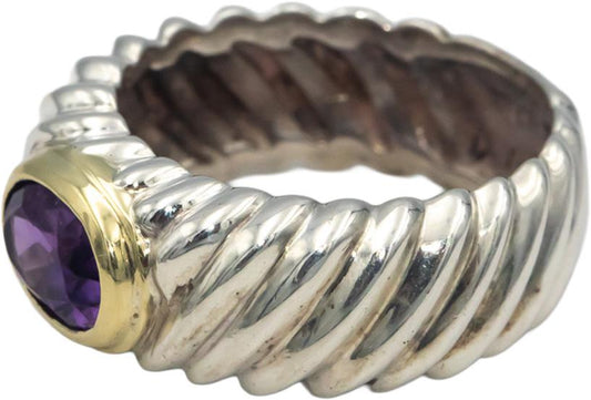 DAVID YURMAN Sterling Silver 14k Gold Amethyst Classic Cable Ring Size 6