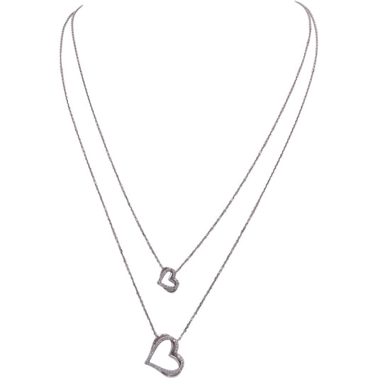 VERA WANG LOVE 10k White Gold Diamond Heart Double Chain Necklace 0.25CT