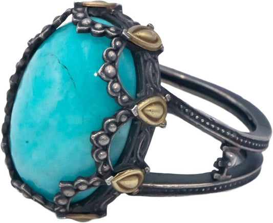 STAMBOLIAN 18k Gold Sterling Silver 10.0CT Amazonite Solitaire Ring Size 7.75