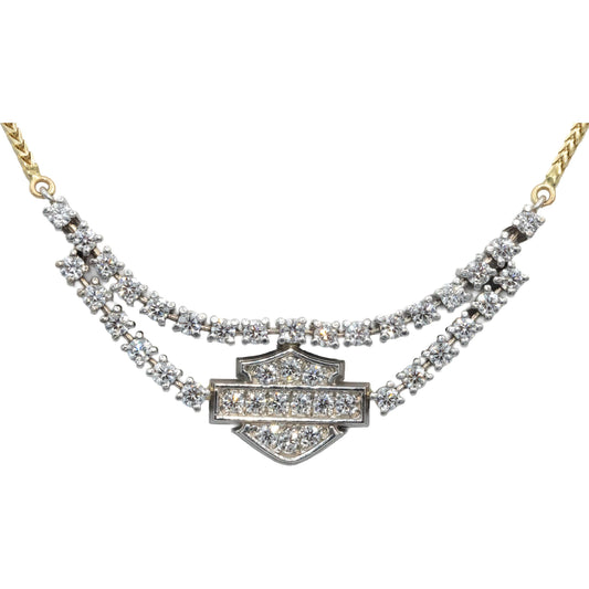 HARLEY DAVIDSON 14k White Yellow Gold Diamond Pendant Necklace 2.0CT FG VS RARE