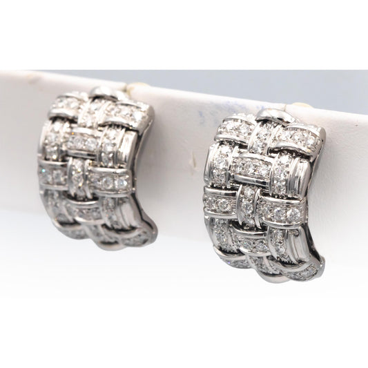 ROBERTO COIN 18k White Gold Diamond Appassionata 3-Row Diamond Earrings 1.25CT