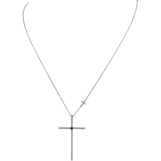 VERA WANG LOVE 10k White Gold Diamond & Sapphire Cross Pendant Necklace 0.36CTW