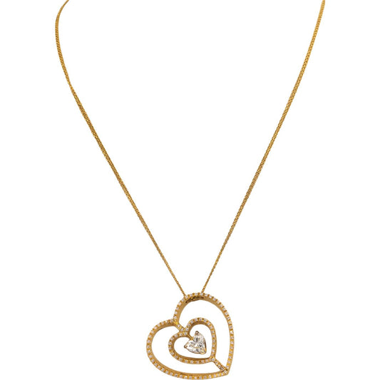 GARAVELLI 18k Yellow Gold Diamond Heart Pendant Necklace 1.55CT w/ 1.05CT Center