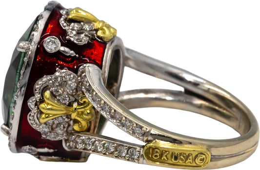 STAMBOLIAN 18k White Yellow Gold Diamond & Tourmaline Cocktail Ring 11.85CT
