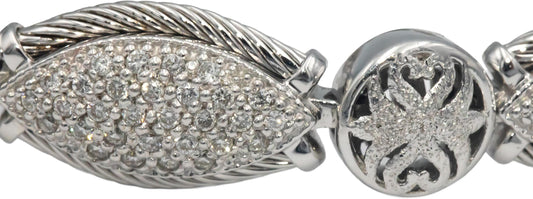 PHILIPPE CHARRIOL 18k White Gold VS Diamond Pave Fancy Link Bracelet 1.10CT