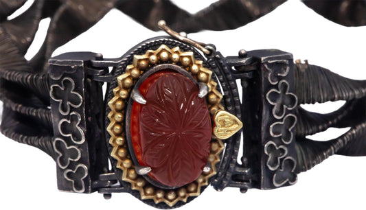 STAMBOLIAN 18k Gold Sterling Silver 8.0CT Carved Carnelian Twisted Mesh Bracelet
