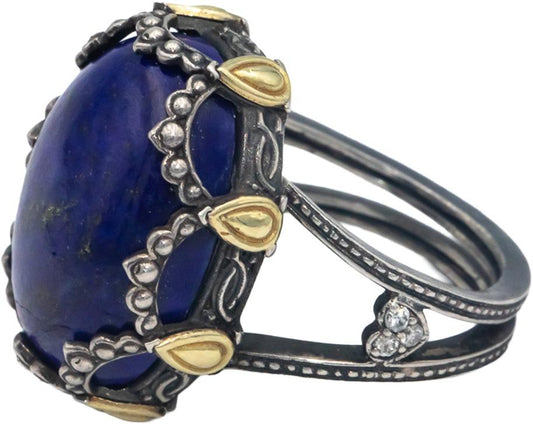 STAMBOLIAN 18k Gold Sterling Silver 12.0CT Lapis Lazuli Cocktail Ring Size 7
