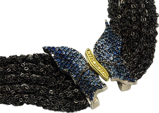 STAMBOLIAN 18k Gold Sterling Silver 2.50CT Sapphire Butterfly Chain Necklace