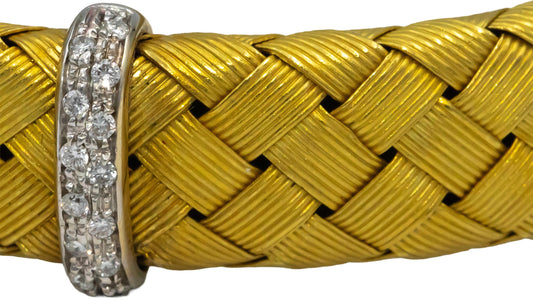 ROBERTO COIN 18k Gold VS Diamond Sapphire Braided Flex Bangle Bracelet .40CT
