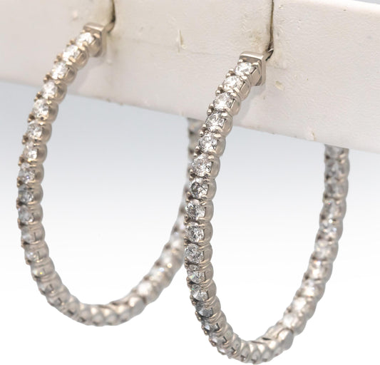 14k White Gold Jewelry VS Round Cut Diamond Inside Out Hoop Earrings 4.31CT