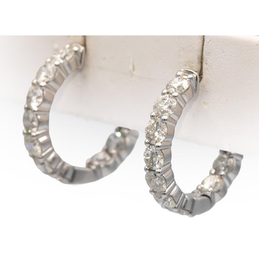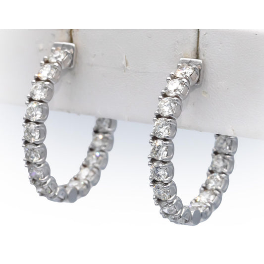 Diamond Round Cut 18k White Gold VS Oval Hoop Inside Out Earrings 5.78CT