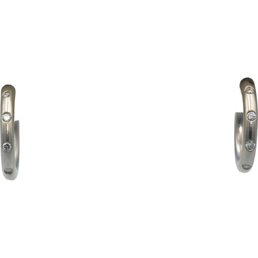 14k White Gold 0.20CT VS Diamond Satin Finish Hoop Huggie Earrings