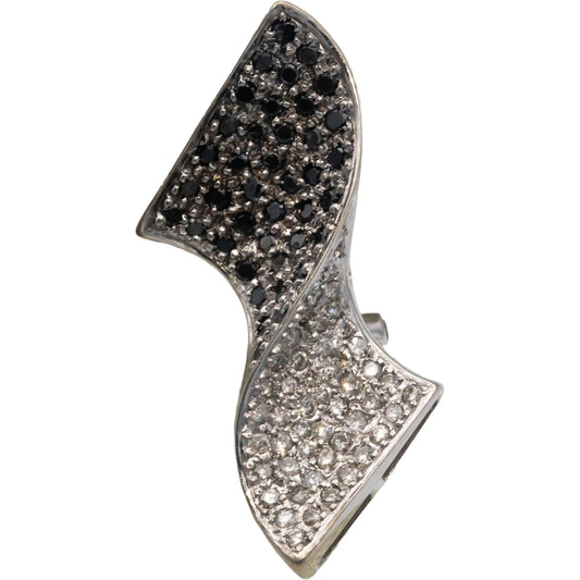 18k White Gold White and Black Round Cut Diamond Wave Cluster Earrings 2.0CT