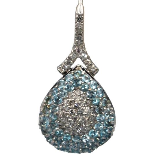 14k White Gold Round Aquamarine & Diamond Cluster Drop Dangle Earrings 1.50CT