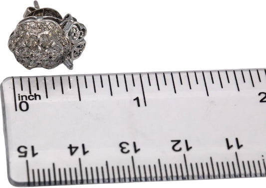 10k White Gold 1.25CT Round and Baguette Cut Diamond Cluster Stud Earrings