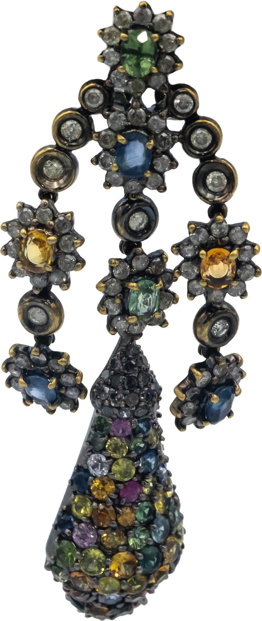 18k White Yellow Gold Diamond and Rainbow Sapphire Day Night Earrings 11.0CT