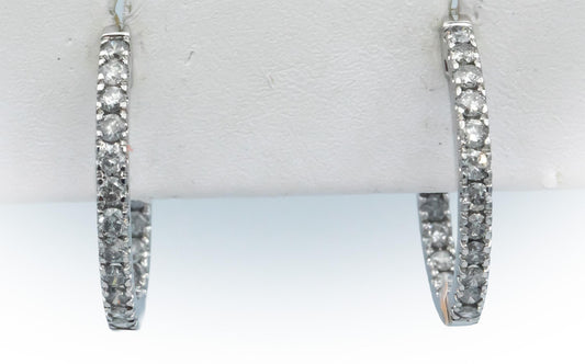 14k White Gold 1.01CT Diamond Inside Out Hoop Earrings