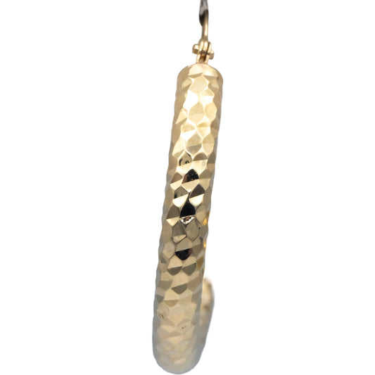 14k Yellow Gold 30.0mm Diameter Diamond Cut Textured Hoop Earrings