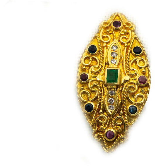 18k Yellow Gold Diamond Ruby Emerald Sapphire Earrings 1.20CT