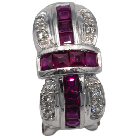 14k White Gold 1.05CT Diamond and Ruby Curved Earrings