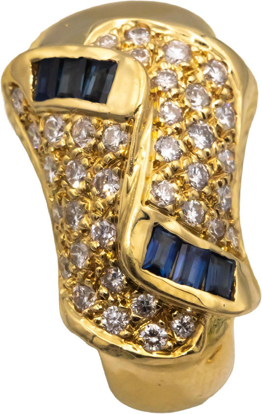 Diamond and Sapphire 18k Yellow Gold Curved Clip On Earrings 2.10CT