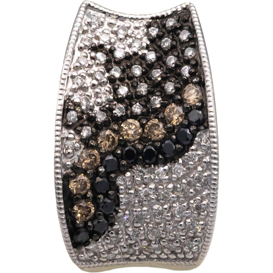 14k White Gold 0.85CT White Brown Black Diamond Cluster Curved Earrings