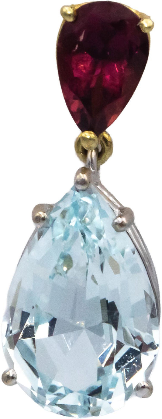 14k White & Yellow Gold 9.50CT Tourmaline and Aquamarine Drop Dangle Earrings