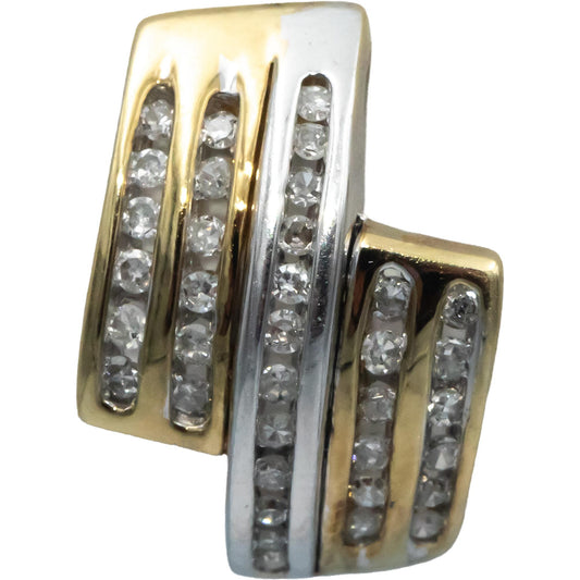 Diamond 10k Yellow & White Gold Channel Set Curved Stud Earrings 0.50CT