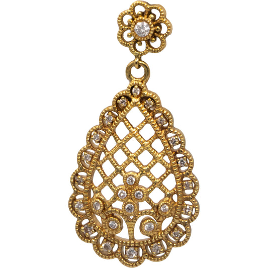 Diamond 18k Yellow Gold VS Round Cut Filigree Drop Dangle Earrings 0.50CT