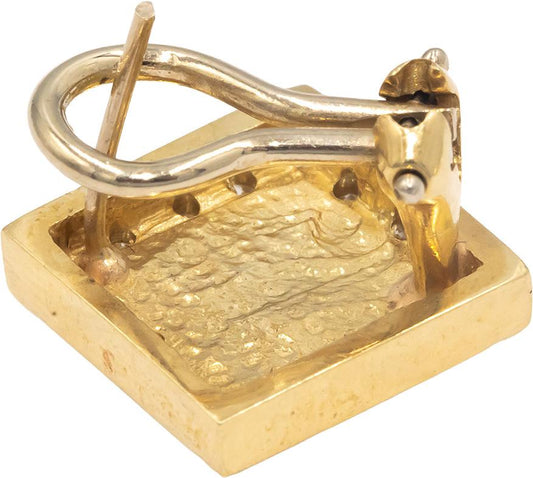 14k Yellow Gold 0.50CT VS Diamond and Painted Enamel Square Shaped Earrings