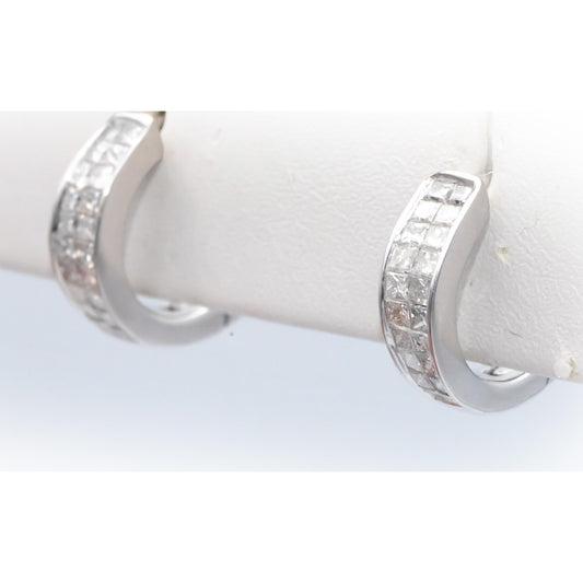 14k White Gold 1.0CT Princess Cut Diamond Hoop Huggie Earrings