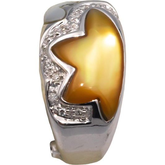 14k White Gold 0.15CT Diamond and Mother of Pearl Curved Earrings