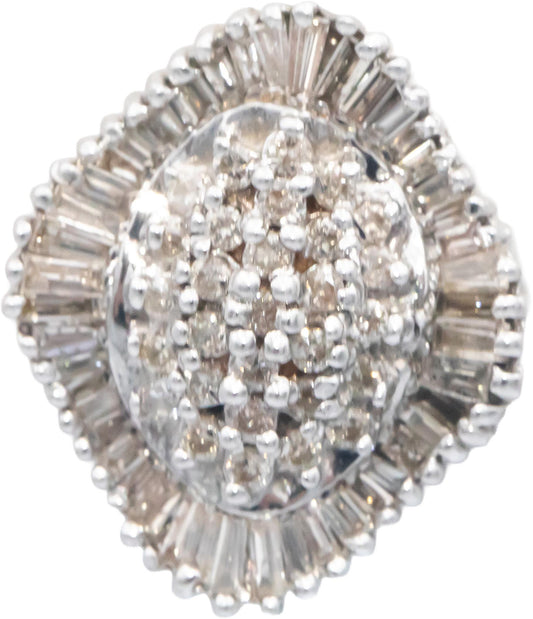 14k White Gold 1.50CT Round and Baguette Cut Cluster Stud Earrings