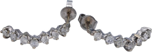 10k White Gold 0.70CT Diamond Curved Stud Earrings w/ 14k Backs